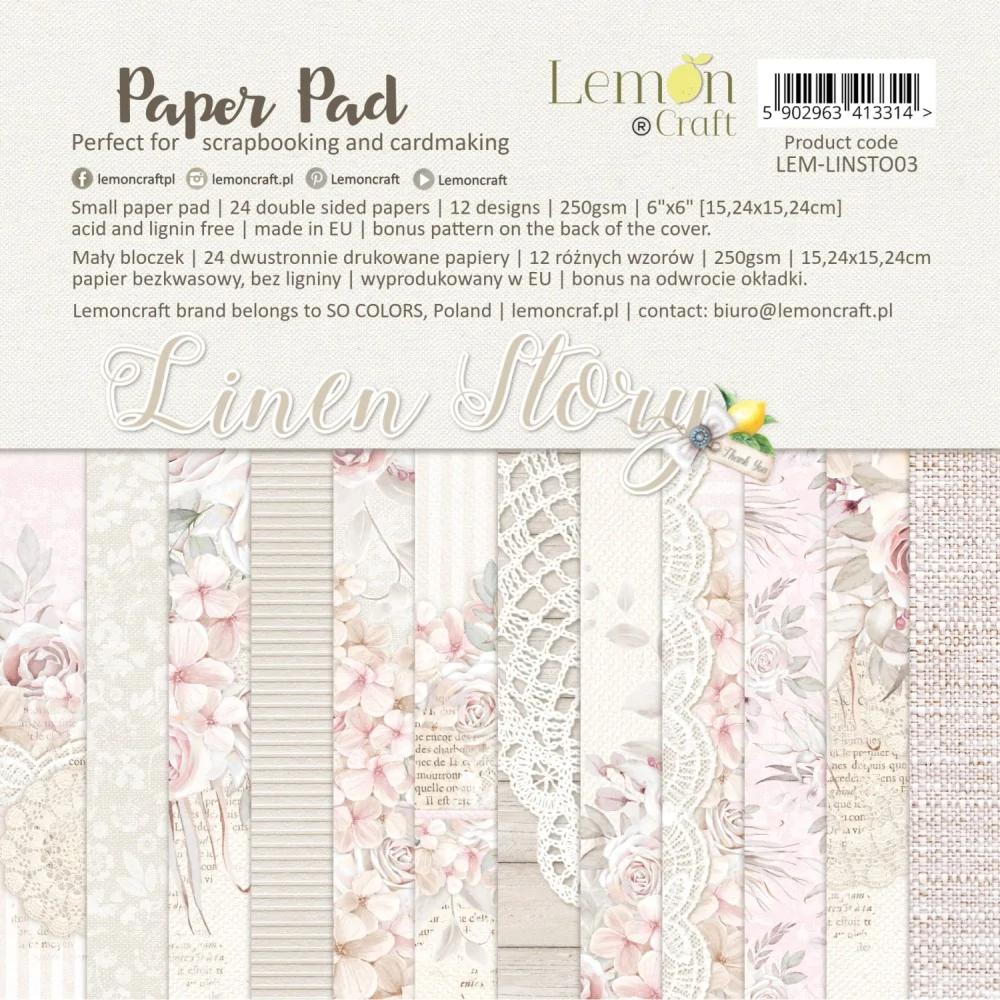 Linen Story - Zestaw papierów do scrapbookingu 15cmx15cm - Lemoncraft
