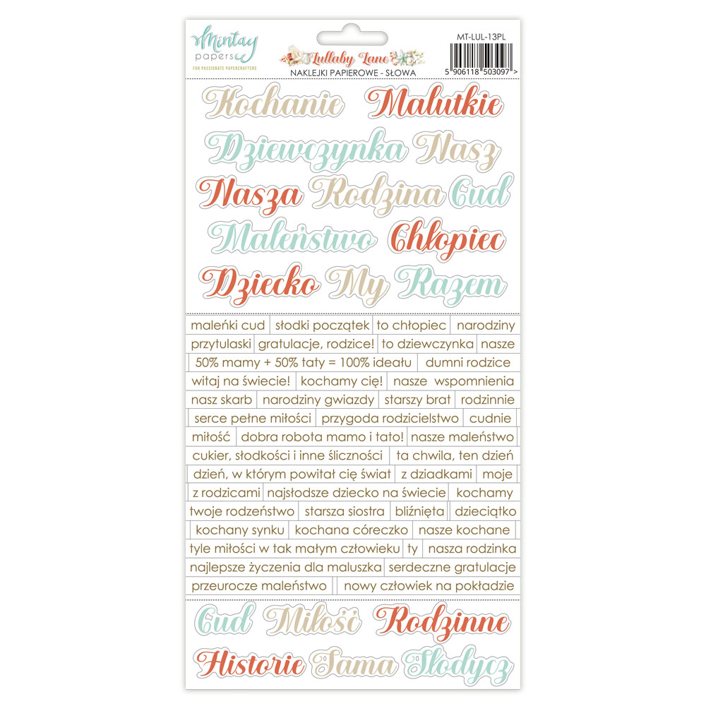 WYSYŁKA PO 25 PAŹDZIERNIKA - LULLABY LANE - NAKLEJKI PAPIEROWE - SŁOWA PL