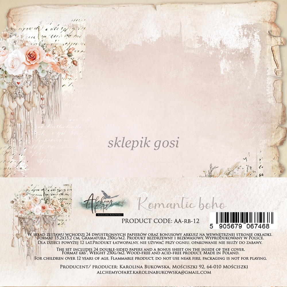 Zestaw 24 arkuszy papierów (4x6 arkuszy) Papier ma gramaturę 250gms.