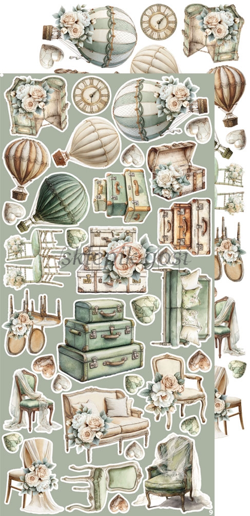 Zestaw 18 arkuszy wysokiej jakości dwustronnego papieru do scrapbookingu z dodatkami do samodzielnego wycięcia - 2x9 wzorów. Rozmiar każdego arkusza: 15,25x31,5cm. Gramatura papieru: 250g/m2. Plus 2x dodatki do wycinania na odwrocie strony tytułowej.