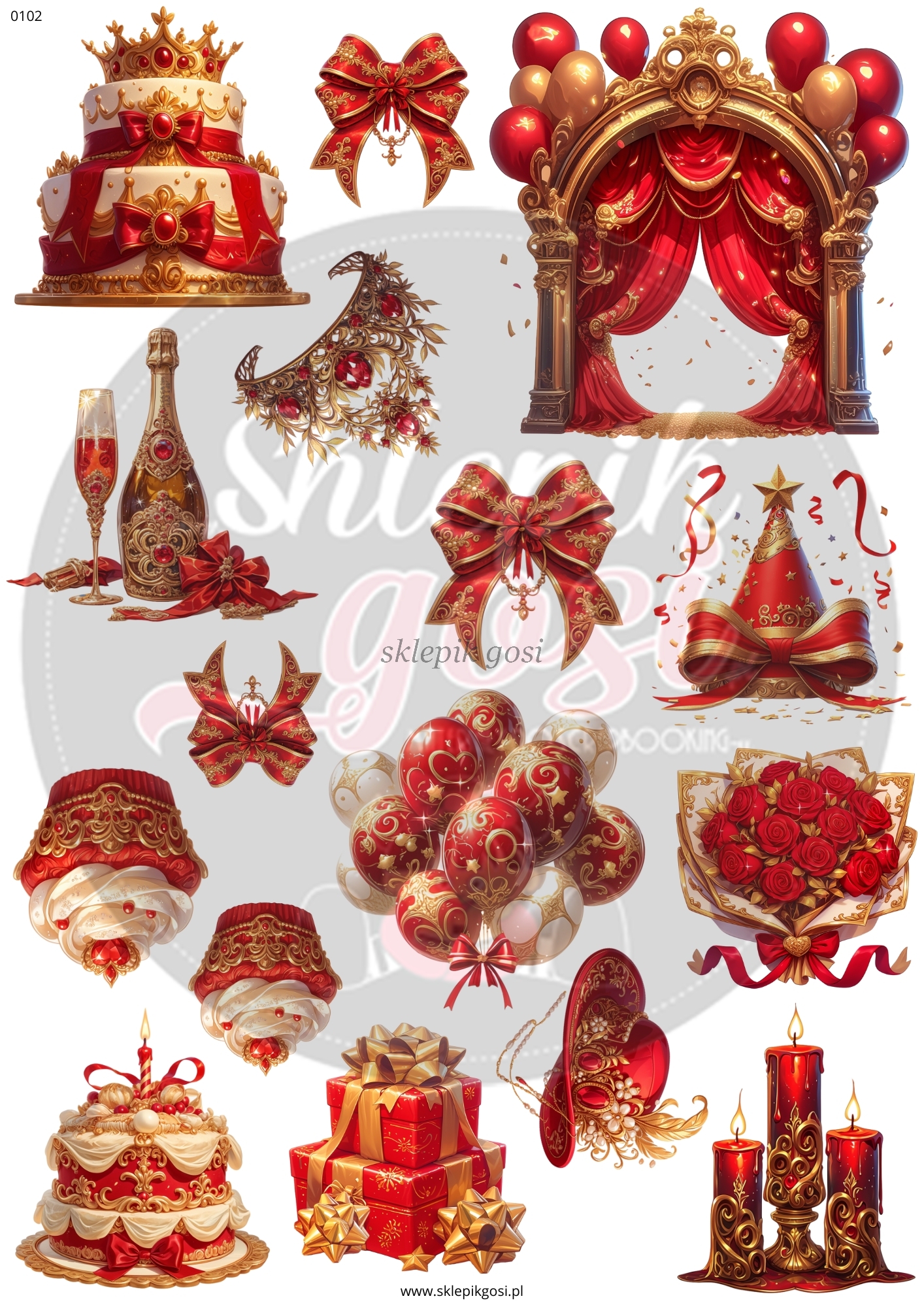 ARKUSZ A4 - NR 0102 - URODZINY CZERWONO-ZŁOTE
