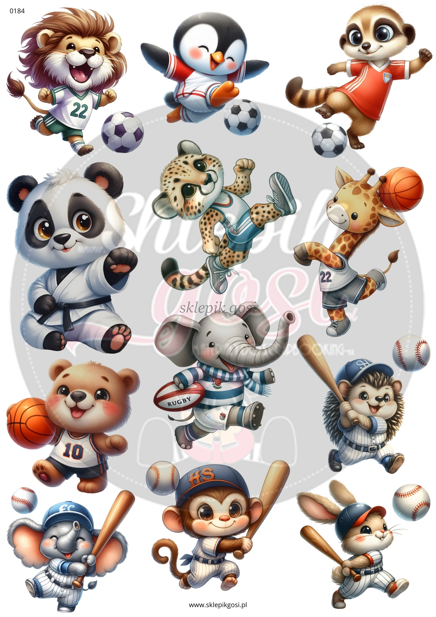 ARKUSZ A4 - NR 0184 - ZWIERZĄTKA SPORTOWCY