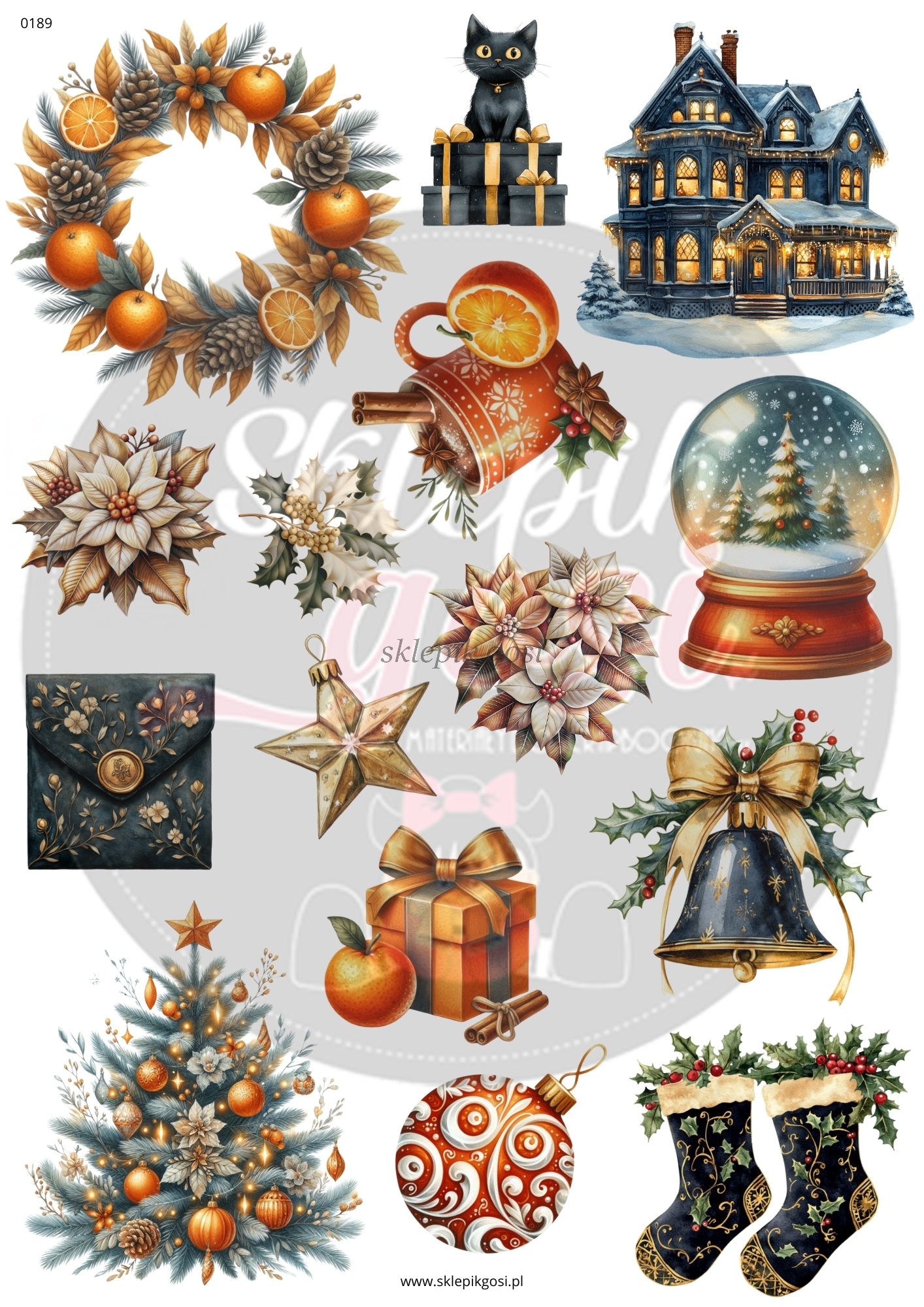 ARKUSZ A4 - NR 0189 - BOŻE NARODZENIE POMARAŃCZOWE