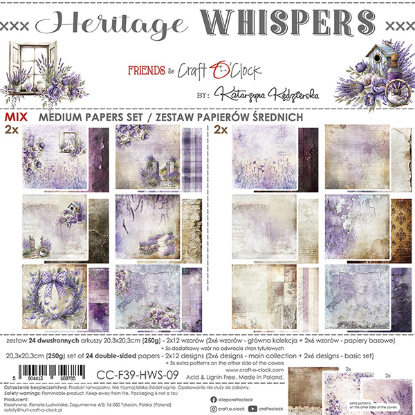 HERITAGE WHISPERS - zestaw papierów 20,3x20,3cm - MIX