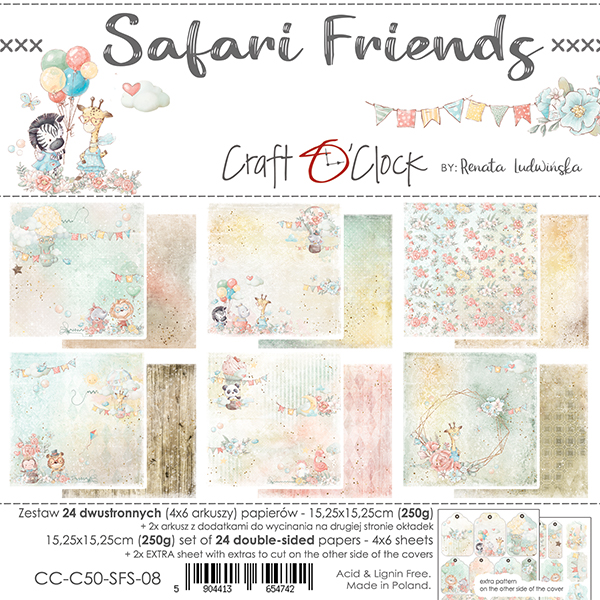 SAFARI FRIENDS - zestaw papierów 15,25x15,25cm