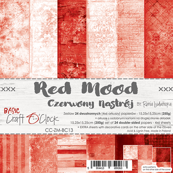 BASIC 13 - RED MOOD - ZESTAW PAPIERÓW 15,25X15,25CM