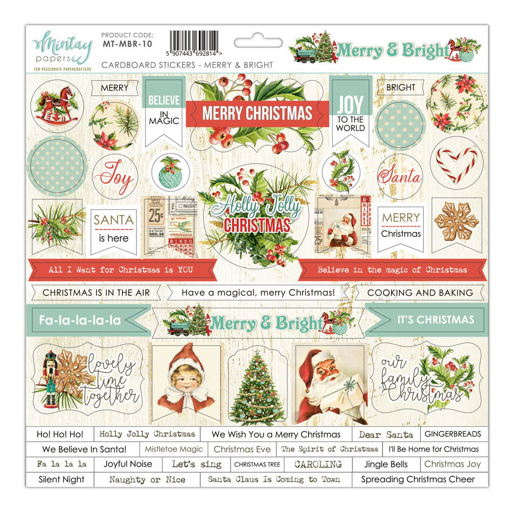 MINTAY - MERRY & BRIGHT - MINTAY Arkusz Naklejek Tekturowych Merry & Bright, ENG