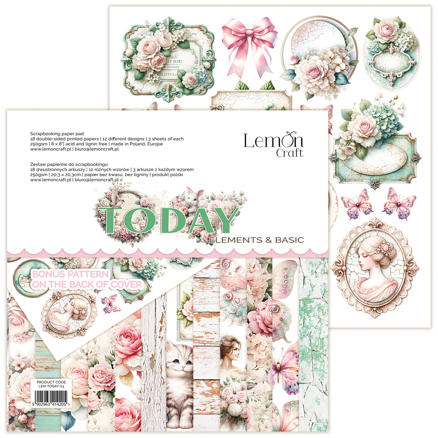 Yesterday Elementy do wycinania - Bloczek papierów do scrapbookingu 15,24x30,5cm - Lemoncraft