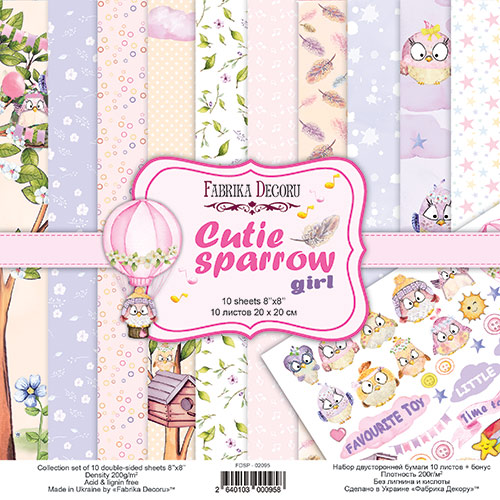 Zestaw papierów do scrapbookingu - CUTIE SPARROW GIRL