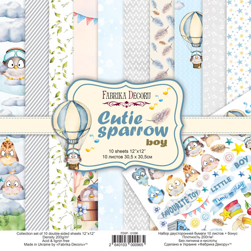Zestaw papierów do scrapbookingu - CUTIE SPARROW BOY